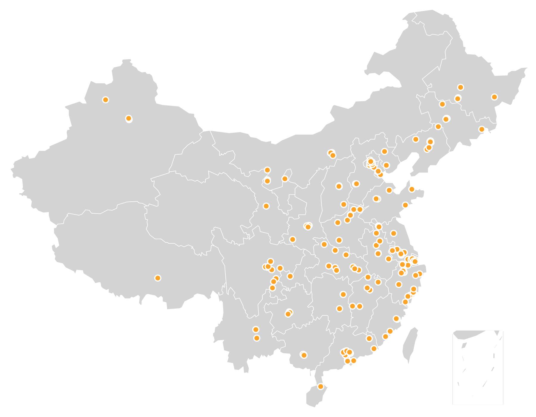 北京、天津、石家莊、唐山、廊坊、太原、長(zhǎng)治、鄭州、洛陽(yáng)、合肥、蕪湖、武漢、荊州、杭州、溫州、臺(tái)州、金華、寧波、湖州、衢州、鎮(zhèn)江、徐州、南京、蘇州、無(wú)錫、南昌、景德鎮(zhèn)、九江、廣州、深圳、佛山、珠海、東莞、海南、廈門、福州、昆明、成都、德陽(yáng)、西安、蘭州、內(nèi)蒙古、西藏、長(zhǎng)春、沈陽(yáng)、哈爾濱、南寧、重慶、烏魯木齊、青島、濟(jì)南